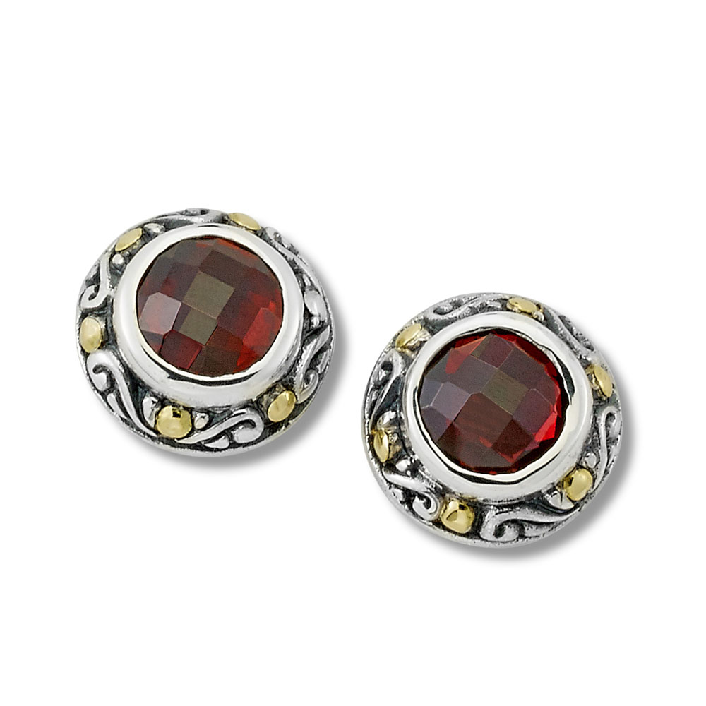 Sterling Silver and 18K Round Garnet Earriing W/ Butterfly Back