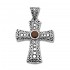 Sterling Silver Balinese Design Scrollwork Cross Pendant With Garnet