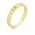 14k Yellow Gold Bezel Set Baguette Diamond Curb Link Ring with 2 baguette diamonds totaling 0.06 carats. Available in white, yellow, and rose gold in whole and half sizes 4-9.