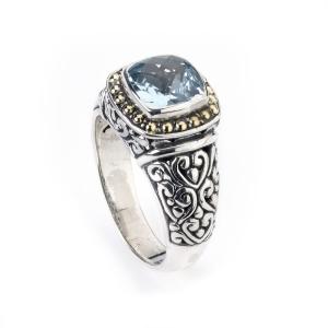 Sterling Silver and 18K Ring W/ Blue Topaz And Swirl Design