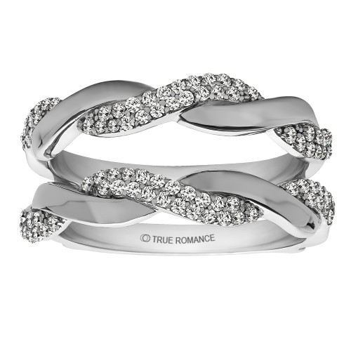 A beautiful design this diamond ring wrap will showcase your solitaire in a prong set diamonds. This style accommodates most classic solitaire diamond rings.Center stone sold separately. This style accommodates various center stone sizes & shapes. Available in Platinum as well as 18K and 14K White Yellow or Rose Gold. Available by Special Order Only. Please allow 4-6 weeks for delivery.